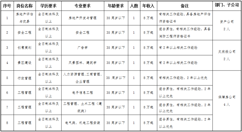 本次面向社會(huì)公開(kāi)招聘衢州市城市建設(shè)投資集團(tuán)有限公司及下屬子公司國(guó)有企業(yè)工作人員共21人。具體招聘崗位、崗位(專業(yè))人數(shù)及其他條件要求詳見(jiàn)附表一。