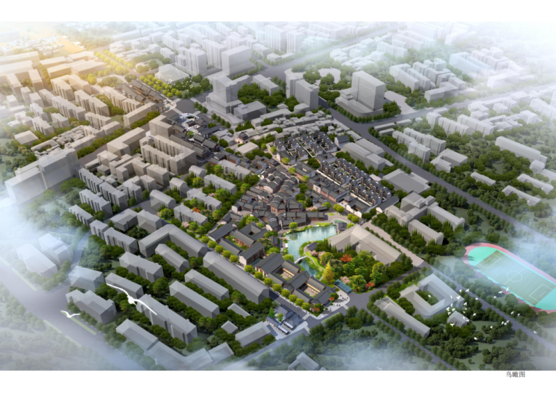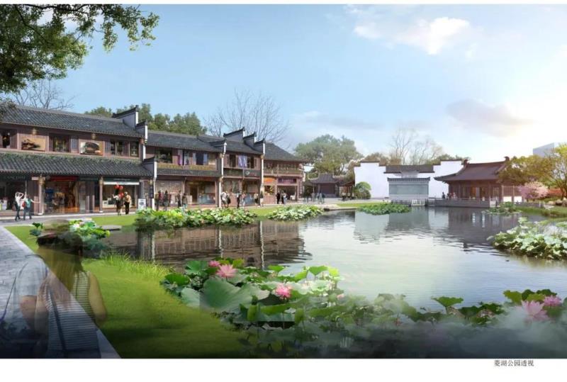 區(qū)塊三處于鐘樓和南孔家廟之間,建筑總面積約28000㎡,區(qū)塊內(nèi)文化展示以儒學(xué)文化為主題,形成文化體驗(yàn)研學(xué)教育旅游觀光于一體的文化展示區(qū)。設(shè)計(jì)中亦植入了關(guān)于菱湖的歷史記憶,在該區(qū)塊東部區(qū)域展示了大片湖面,建筑上采用宋式風(fēng)格,以再現(xiàn)菱湖的歷史風(fēng)韻。