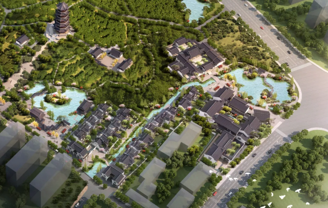 配套建設(shè)文化主題旅游酒店服務(wù)功能,對(duì)綠化、水系等生態(tài)景觀進(jìn)行改造提升,“顯山露水”打開府山南側(cè)景觀面,復(fù)建城隍廟。
