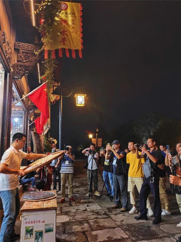 光影秀、燈光秀、古香古色的建筑、麻餅制作表演......在水亭門歷史文化街區(qū),許多擁有衢州特色的元素讓拍友們不時(shí)駐足欣賞,在老師的指導(dǎo)下,拍友們拿起相機(jī)或手機(jī),將衢州的濃厚的人文底蘊(yùn)定格在鏡頭里。