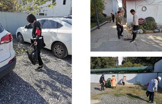 ▲用垃圾鉗及掃帚清理各點(diǎn)位路面垃圾