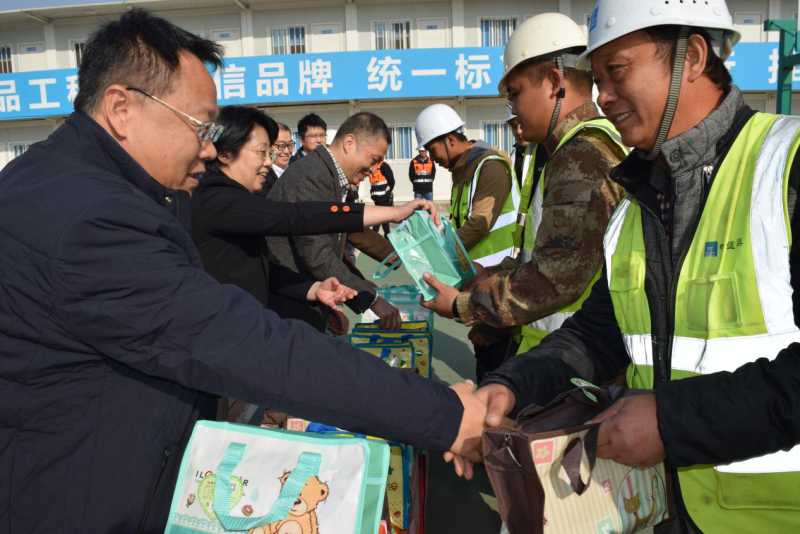 張衛(wèi)華一行重點(diǎn)參觀了項(xiàng)目施工現(xiàn)場(chǎng)及智慧展廳,了解了項(xiàng)目的建設(shè)情況,智慧工地、BIM信息系統(tǒng)、3D打印等各項(xiàng)新技術(shù)的應(yīng)用情況 。在項(xiàng)目生活區(qū),張衛(wèi)華與一線工人親切交談,了解他們的勞動(dòng)強(qiáng)度和生活狀況,為他們送上省總工會(huì)專門定制的慰問(wèn)禮包,為建設(shè)者送來(lái)了溫暖與祝福。