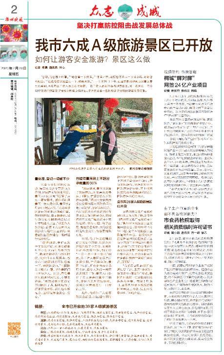 2月28日,衢州晚報第02版報道了爛柯山景區(qū)復(fù)工情況。