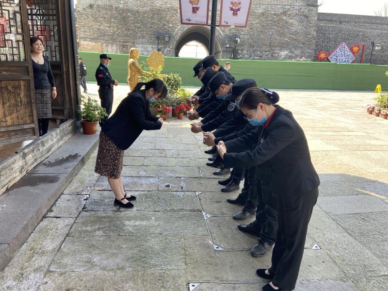 前期,水亭門歷史文化街區(qū)和爛柯山景區(qū)的相關(guān)工作人員也集中進(jìn)行了作揖禮教學(xué) 。